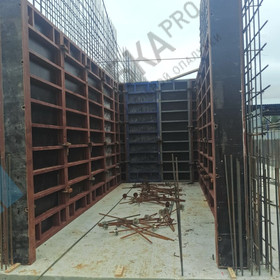 Эта сборная конструкция состоит из крупных стальных или алюминиевых щитов. Они оснащены ребрами жесткости, которые позволяют системе выдерживать значительные нагрузки. Такая опалубочная конструкция применяется для формирования стен, перекрытий или других элементов сооружений. Она востребована в масштабных строительных проектах.